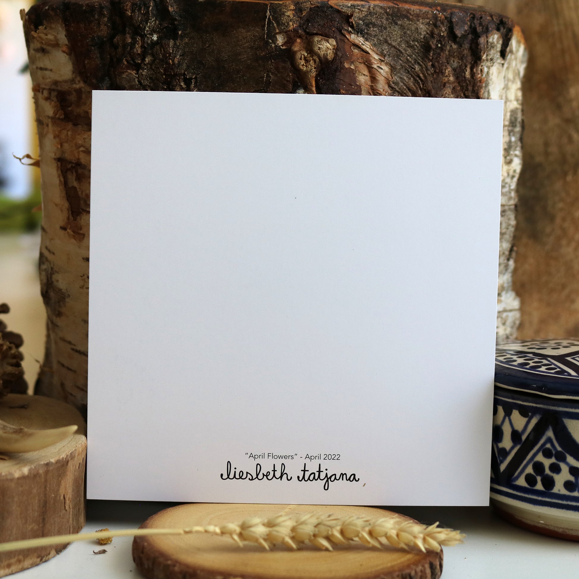 You can use these as a print to frame, place on your mood board or you can send them to a friend as a post card. The paper is pleasant to write on with a pen and does not bleed. 16x16cm are a standard envelope size that you can find.